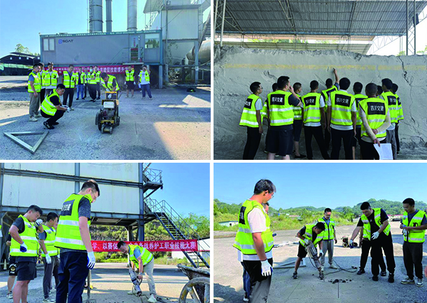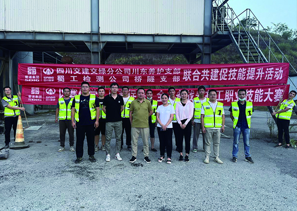 2022 年四川省职工职业技能大赛运营高速公路养护项目技能比武大赛在即,为了能在赛场上赛出风格,赛出水平,赛出风采,蜀工检测公司桥隧支部、交绿分公司川东养护支部围绕“以赛促学、以赛促练”主题联合在广安市齐福镇川东养护项目开展结对共建活动,选拔参赛队员全力备战养护工职业技能大赛。