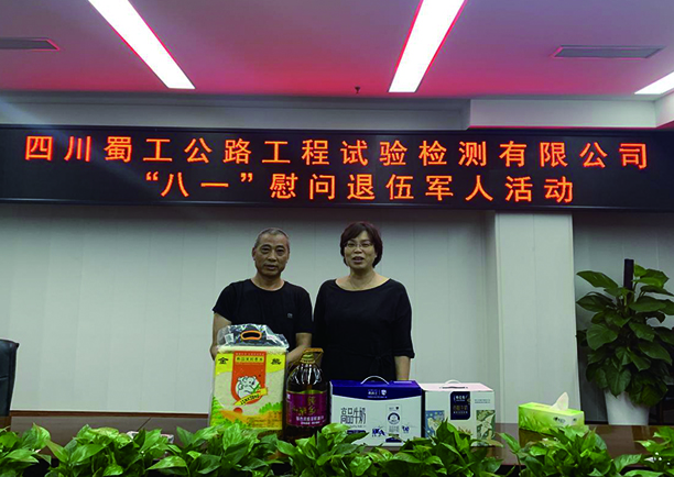 母体试验室试验辅助人员陈华富,1983年入伍,1988年退役。慰问活动中,公司党总支纪律检查委员、董事、副总经理、工会主席刘红同志详细了解其入伍经历,并代表公司肯定了以陈华富为代表的退役军人职工多年来在各自岗位上为公司发展做出的贡献,鼓励他继续发扬军人退伍不褪色的光荣传统,发挥模范带头作用,继续为公司改革发展建言献策。