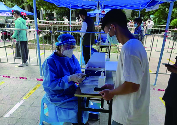 公司党总支纪律检查委员、董事、副总经理、工会主席刘红带头下沉防疫一线,参加天府新区华阳街道将军碑社区志愿服务——现场秩序维护、核酸检测现场信息录入