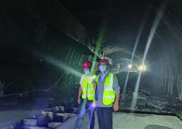 宋磊(右)在隧道抢险检测现场