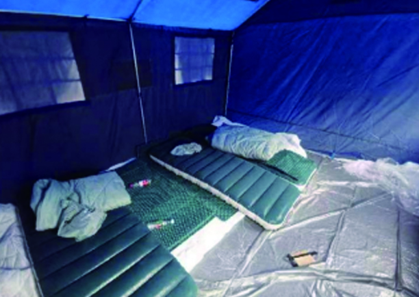 晚上9点多,安全排查队队员收工来到集体核酸检测点。
