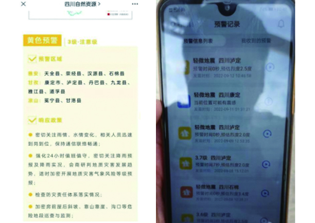 灾后安全排查队员在泸定收到的地地质灾害预警和地震预警