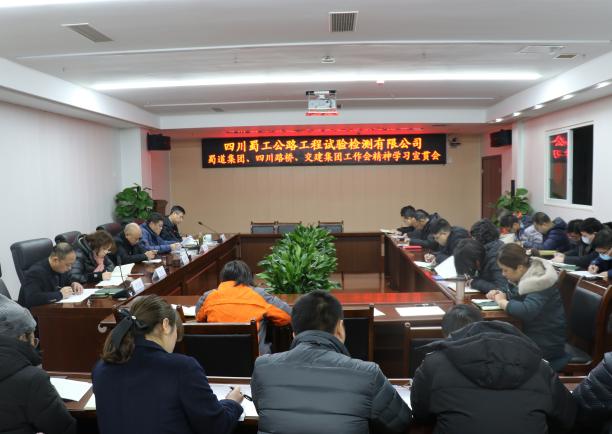1月16日,蜀工检测公司组织召开蜀道集团、四川路桥、交建集团工作会精神学习宣贯会。蜀工检测公司领导班子成员、中层管理人员及部分职工代表共计43人参会,会议由蜀工检测公司党总支副书记、副董事长、副总经理(主持生产经营管理工作)周琦森主持。