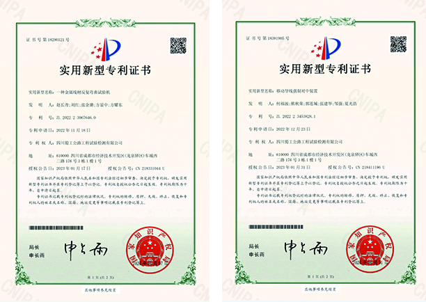 蜀工检测公司深入贯彻落实新发展理念,矢志科技创新,加强关键核心技术攻关,不断优化创新环境,鼓励公司道路、桥梁、隧道、测绘等各业务板块自主发明创造,在科技创新领域深入探索研究,努力在新技术、新设备、新材料、新工艺的研究和应用等重要领域不断实现创新突破,推动公司技术能力不断提升。近期,蜀工检测公司取得“一种金属线材反复弯曲试验机”和“移动导线强制对中装置”两项国家知识产权局实用新型专利。