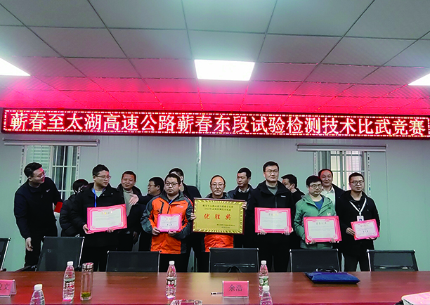 2023年2月17日-18日,为弘扬劳模精神和工匠精神,促进蕲春至太湖高速公路蕲春东段项目试验检测人员提升技术水平,提高试验检测工作的及时准确性,打牢项目质量管理良好基础,湖北交投蕲太东高速公路有限公司组织项目全线各施工、监理单位共四家试验室开展试验检测技术比武活动。蜀工检测公司蕲春东段总监办工地试验室在本次比赛中,以综合成绩排名第一的优异成绩,荣获“团体优胜奖”。