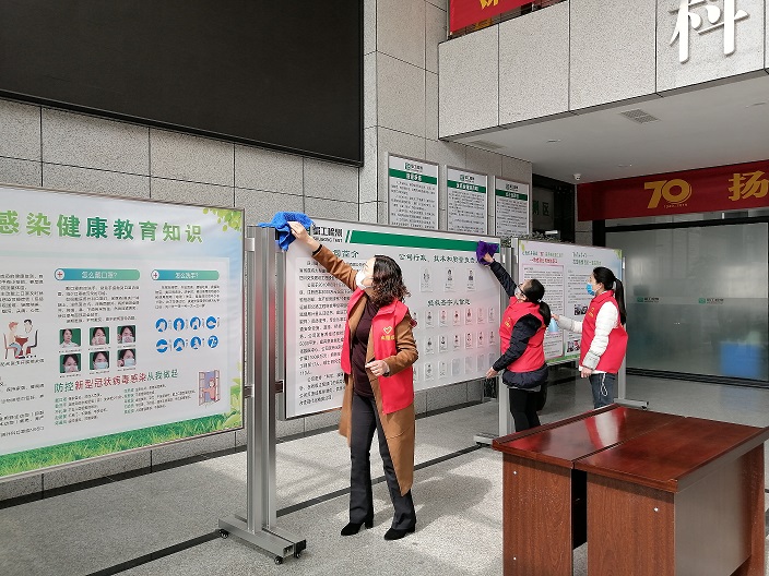 3月6日下午,青年志愿者们携手全体女职工,齐心协力、分工协作,对办公室、试验室、档案室、文化展厅等区域进行环境卫生大扫除以及全覆盖消毒。公司副总经理、工会主席刘红同志带领工会委员会成员到各个办公室进行督查指导,对每个办公室的不足及时指出并提出整改意见。她指出:疫情防控期间,要时刻保持办公环境整洁,勤开窗、多通风;少数职工的办公桌较凌乱,对卫生整理还不够重视,仍需在以后工作中继续加强。