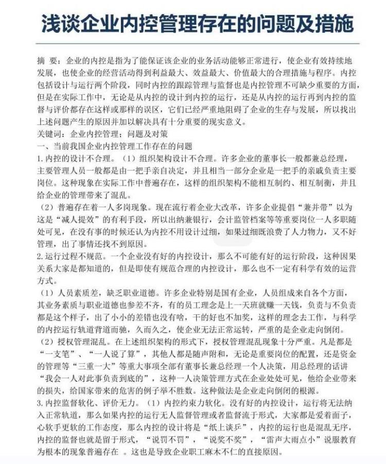 浅谈企业内控管理存在的问题及措施