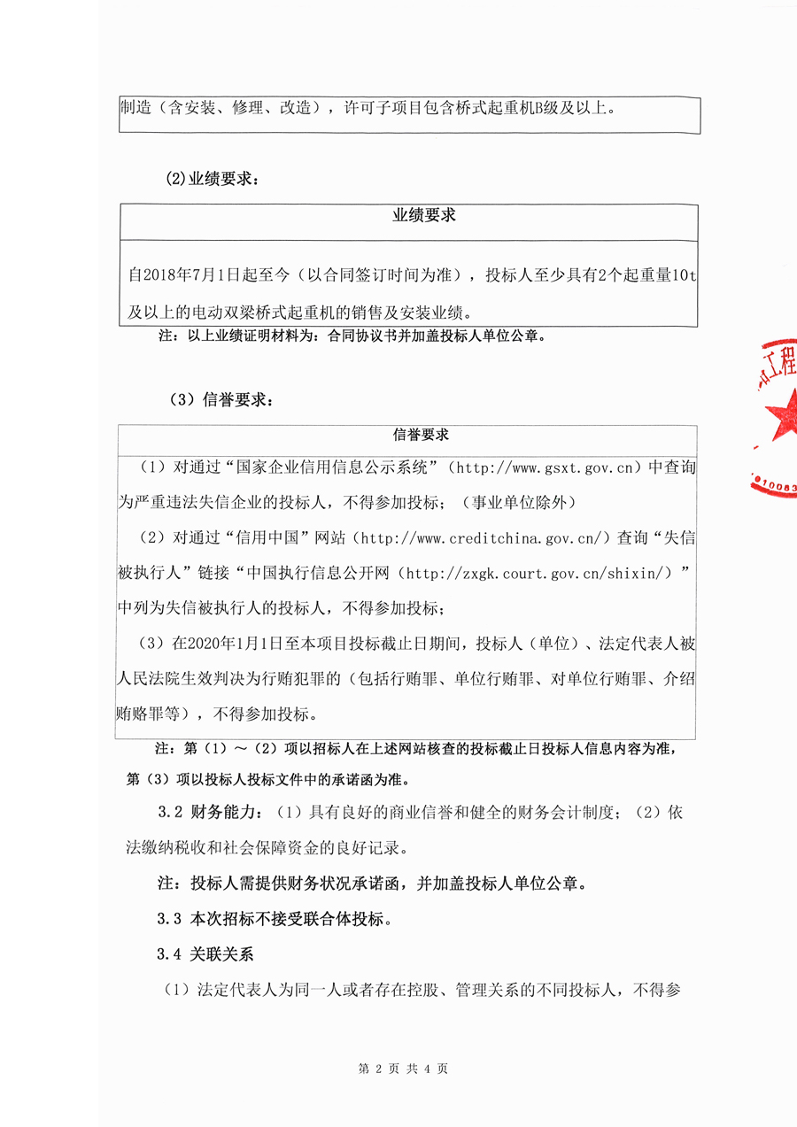 采购“四川交建智能检测生产研发项目”电动双梁桥式起重机及安装(第二次)招标公告