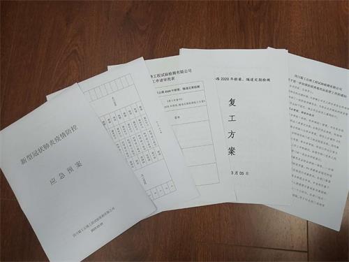 在开展桥隧检测前,雷林同志按照“抓疫情防控不放松,抓安全生产不松懈”的原则,制定了《成仁高速公路2020年桥梁、隧道定期检测复工方案》《新型冠状肺炎疫情防控应急预案》,组织了参与定期检测工作组成员反复学习公司《关于进一步加强防疫消毒用品监管工作的通知》,熟知防疫消毒用品管理、领取、使用,消毒酒精储存和使用注意事项以及84消毒液的使用、配比和注意事项,并对定期检测工作组成员全面开展健康评估的基础上,向公司疫情防控工作组提出复工申请,得到同意后方予进场开展桥隧检测工作,为整个检测工作的安全开展奠定了基础。