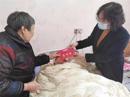 2018年10月,公司职工刘红君同志突发脑梗,经医院全力抢救,刘红君从昏迷中醒来但仍卧病在床,生活不能自理。突如其来的疾病,高昂的治疗费用,让这个普通家庭几乎坍塌。三年来,公司工会定期前往医院看望,慰问其家属,时刻关注其家庭动态,积极帮助刘红君一家克服困难,重拾生活的信心。