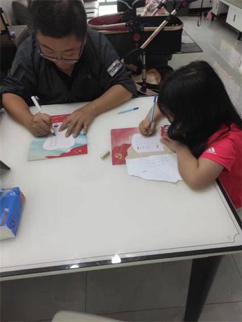 红色基因代代传,党史学习教育进家庭。摸底调查公司职工子女基本情况,以7岁为限,7岁以下职工家庭开展党史元素手工作品制作,7-14岁职工家庭开展党史书画作品创作,同时结合职工家庭情况开展宝宝唱我来听、宝爸宝妈红歌对唱、祖孙三代同唱红歌活动。做党旗、拼红船、编草鞋,书《七律长征》《重上井冈》,歌唱《童心向党》《在灿烂阳光下》《我和我的祖国》……“这样充满趣味的手工游戏、红歌接唱,我和孩子都很乐在其中。”不少职工认为这样的活动难能可贵,既能促进亲子关系,提高亲子陪伴的质量,还能在在此过程中给孩子讲讲红色精神背后所蕴含的故事,堪称一举两得。活动让红色精神传递至更多职工家庭,带动少年儿童共同学习党史,将爱党爱国爱家的红色基因代代相传。
