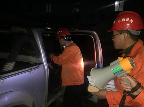 晚21:00,久马高速公路TJ7项目工地试验室以工地试验室遇到突发洪水为背景开展防汛应急演练。